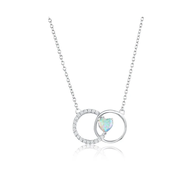 Sterling Silver, White Opal Heart, Cz Infinity Necklace
