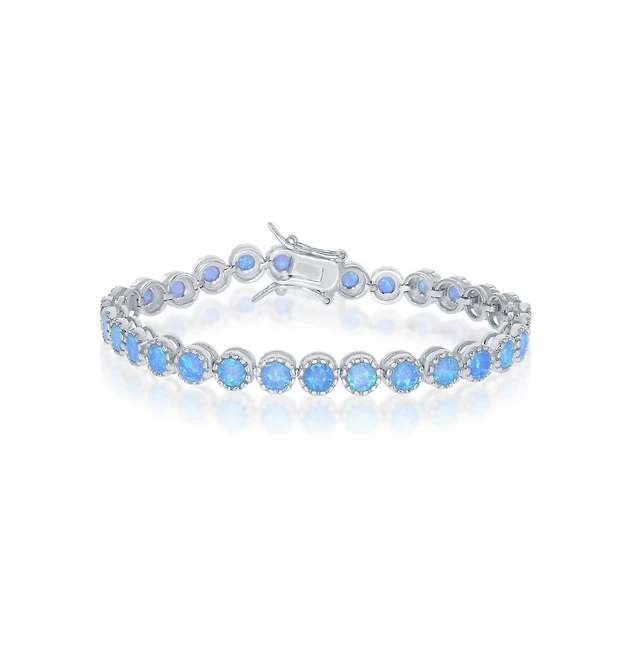 Sterling Silver Simulated Opal and CZ Oval Link Studs