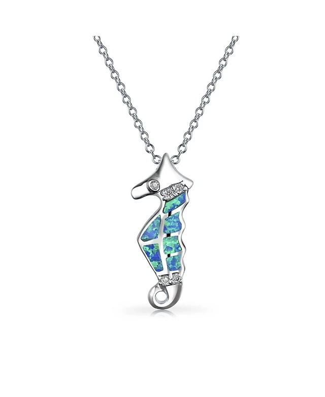 Bling Jewelry Tropical Nautical Blue Created Opal Sand Crab Pendant Necklace Sterling Silver