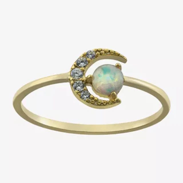 Womens Lab Created White Opal 14K Gold Over Silver Oval Cocktail Ring