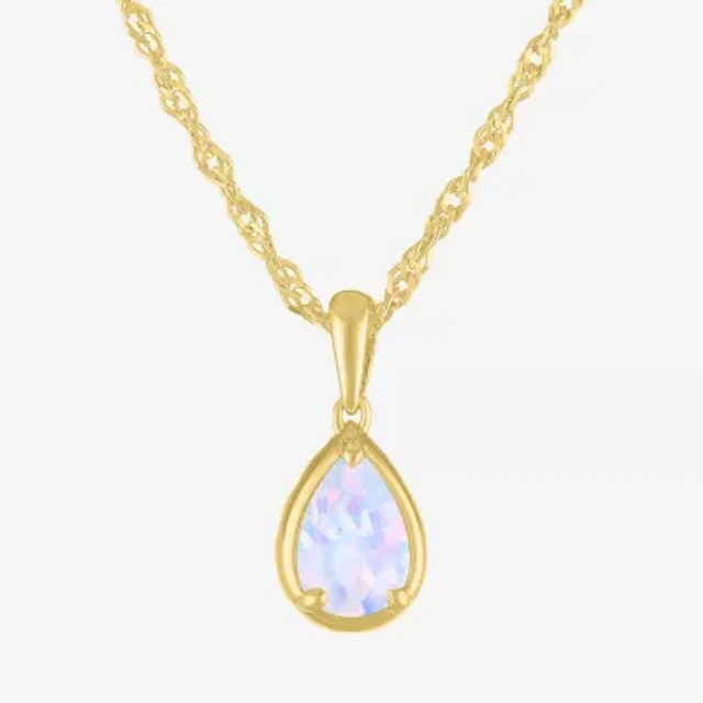 Womens Lab Created Multi Color Opal 14K Gold Over Silver Pear 16 Inch Pendant Necklace