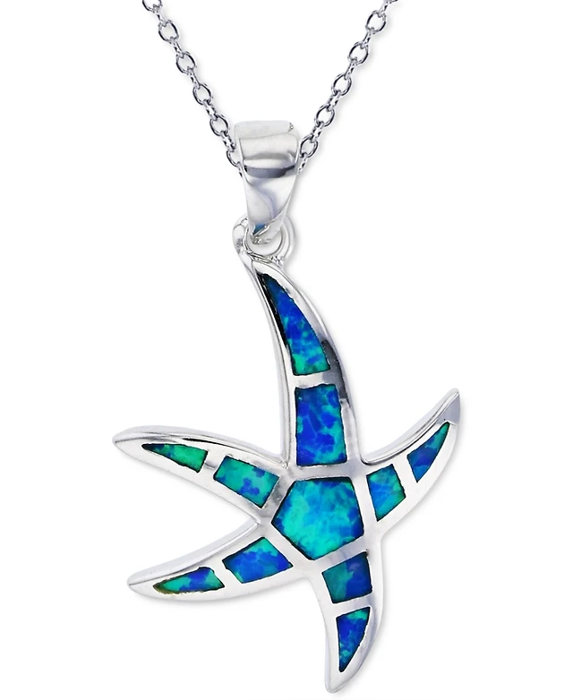 Lab-Created Opal, Swiss Blue Topaz & White Lab-Created Sapphire Dragonfly Necklace Sterling Silver 18"