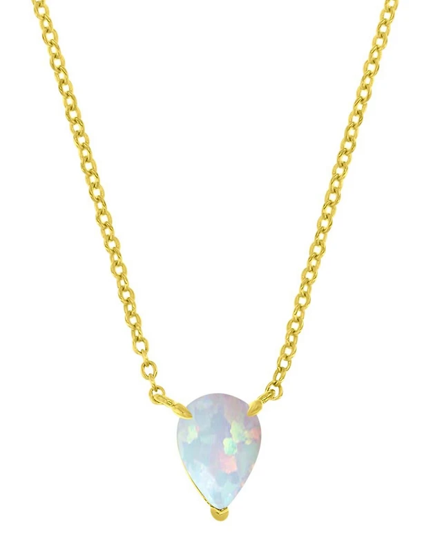 Yes, Please! Womens Lab Created White Opal Sterling Silver Pear 18 Inch Pendant Necklace