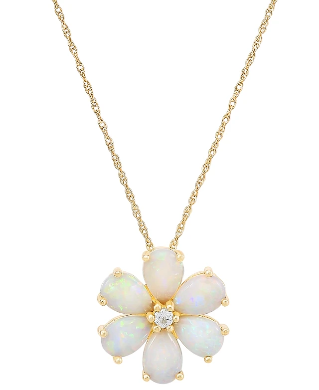Effy Opal (3-1/6 ct. t.w.) & Diamond (1/6 ct. t.w.) 18" Pendant Necklace in 14k Rose Gold