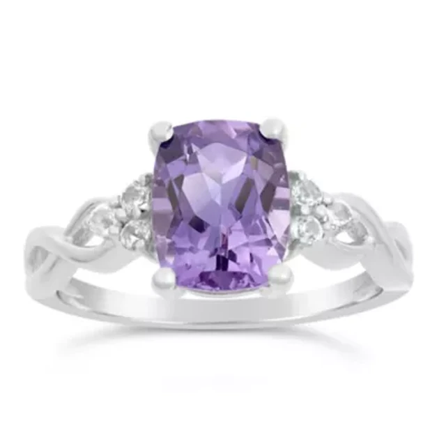 Cushion Gemstone and White Topaz Ring 10K Gold