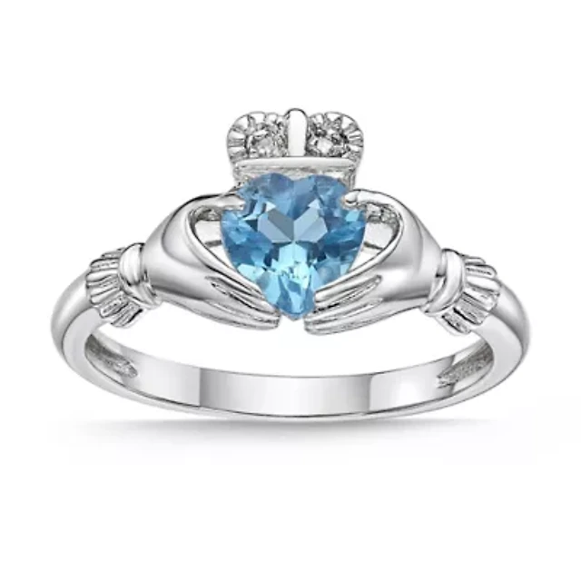 Gemstone and Diamond Accent Claddagh Ring Sterling Silver
