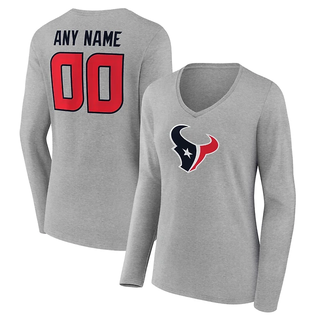 Women's Gray Houston Texans Team Authentic Custom V-Neck Long Sleeve T-Shirt