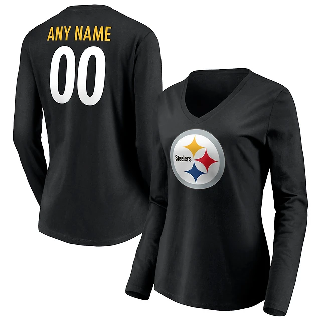 Women's Black Pittsburgh Steelers Team Authentic Personalized Name & Number Long Sleeve V-Neck T-Shirt