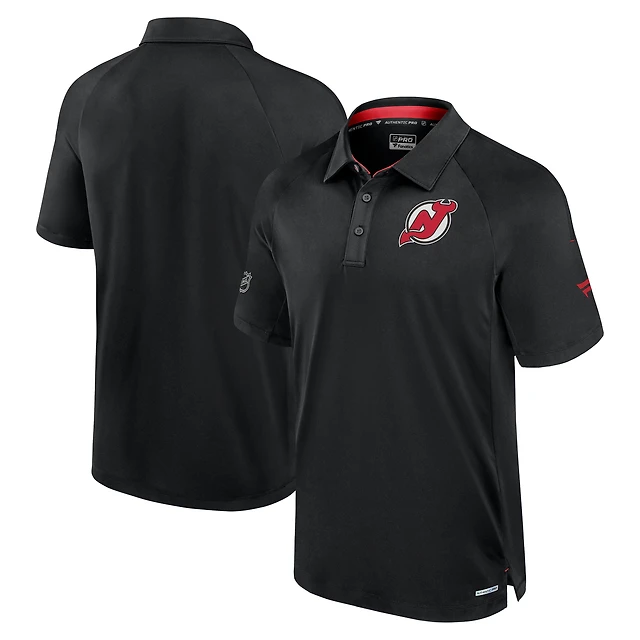 Men's Fanatics Black New Jersey Devils Authentic Pro Rink Raglan Polo