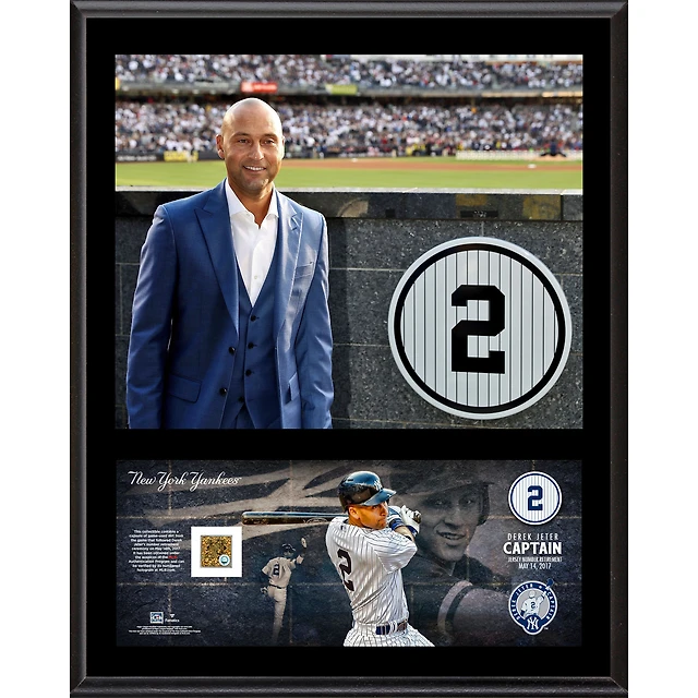 Derek Jeter New York Yankees 12'' x 15'' Jersey Retirement Sublimated Player Plaque with a Capsule of Game-Used Dirt