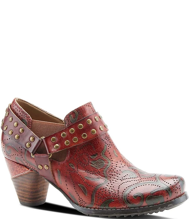 L'ARTISTE Kacielou Tooled Perforated Leather Studded Harness Hardware Shooties