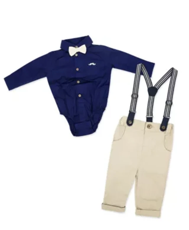 Baby Boys 4 Piece Suspender and Navy Bowtie Clothing Set