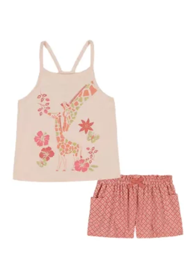 Baby Girls Giraffe Printed Tank Top and Shorts Set