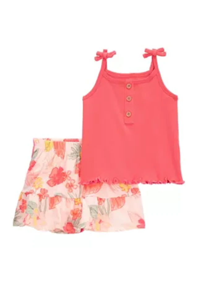 Baby Girls Tank Top and Printed Skort Set