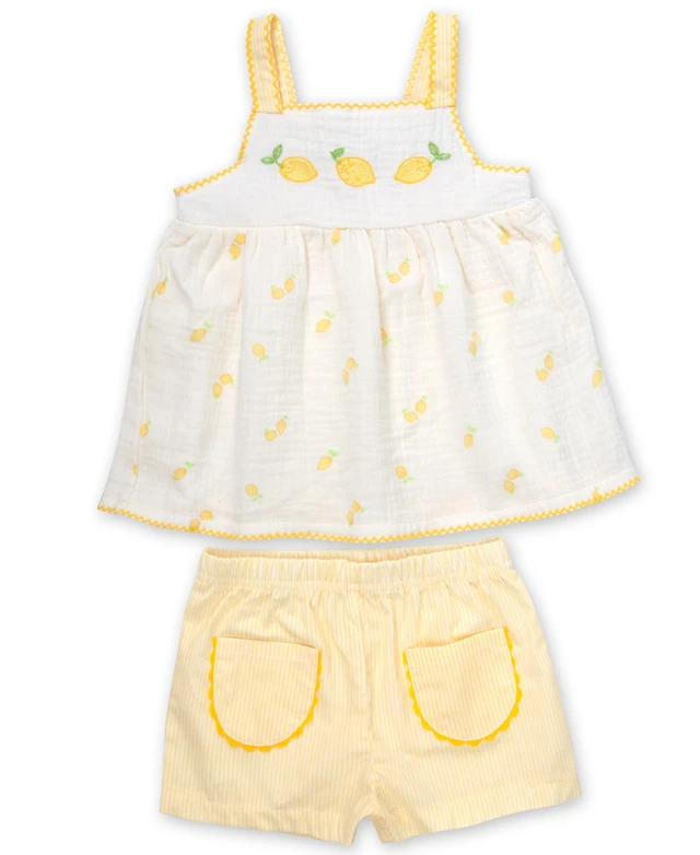 Baby Essentials Girls' Lemon-Inspired Square Neck Tank Top & Shorts, 2-Piece Set