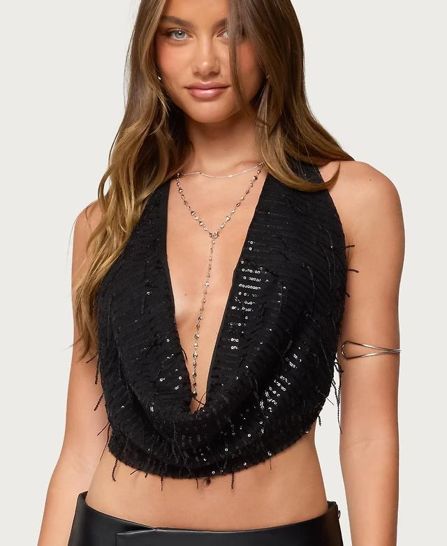 Edikted Roxey Sequin Backless Cowl Neck Top