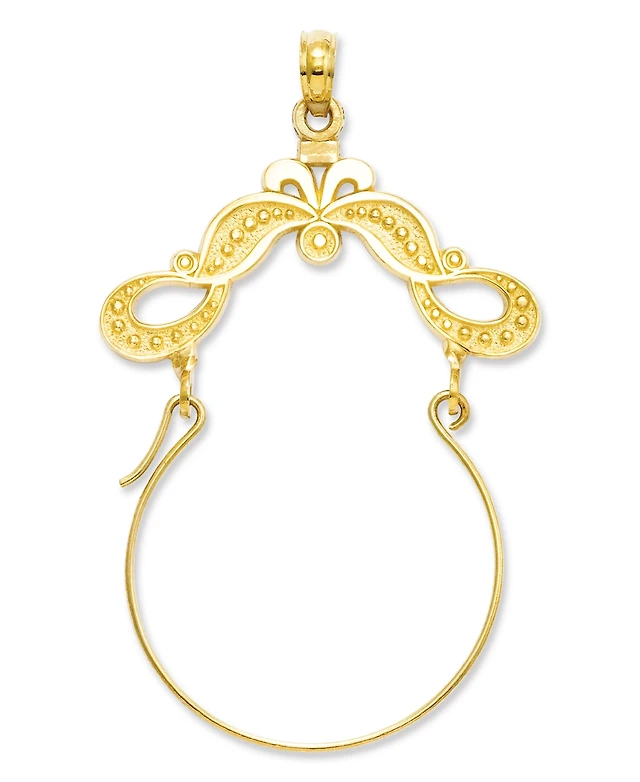 14k Gold Charm Holder, Polished Ribbon Decorated Charm Holder