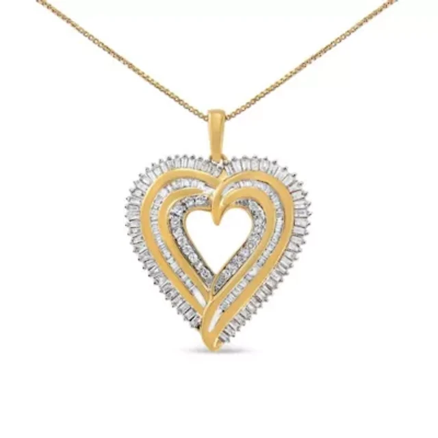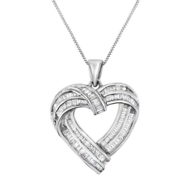 Silver 3/4 Cttw Round and Baguette-Cut Diamond Open Heart 18" Pendant Necklace