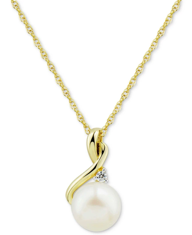 Cultured Freshwater Pearl (7mm) & Diamond (1/20 ct. t.w.) 18" Pendant Necklace in 10k Gold