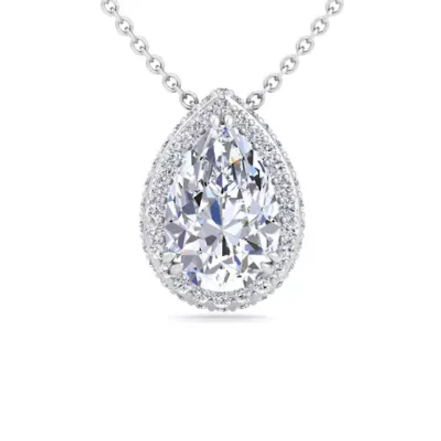 Lab Created 2 1/4 Carat Oval Shape Lab Grown Diamond Halo Necklace In Sterling Silver