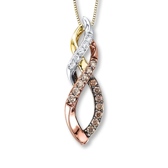 Diamond Necklace 3/8 ct tw Brown/White 10K Tri-Color Gold