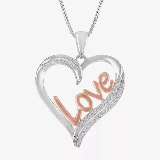 Hallmark Diamonds Rose Necklace 1/8 ct tw Sterling Silver & 10K Rose Gold 18"
