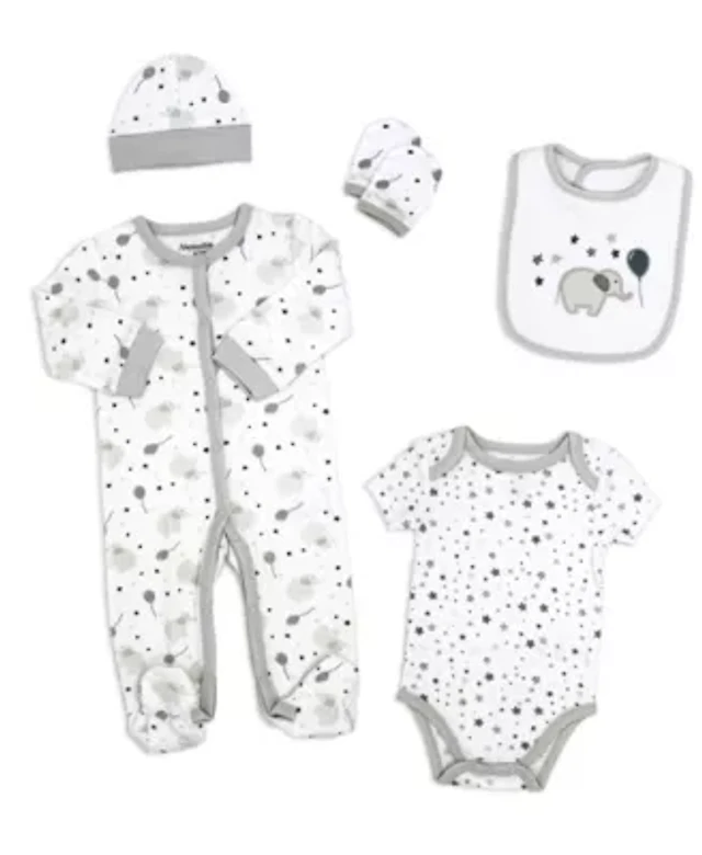 Baby Boys and Girls Elephants Balloons Layette, 5 Piece Set