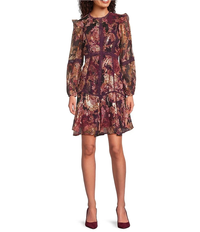 Jessica Howard Plus Size Floral Print Balloon Sleeve Dress