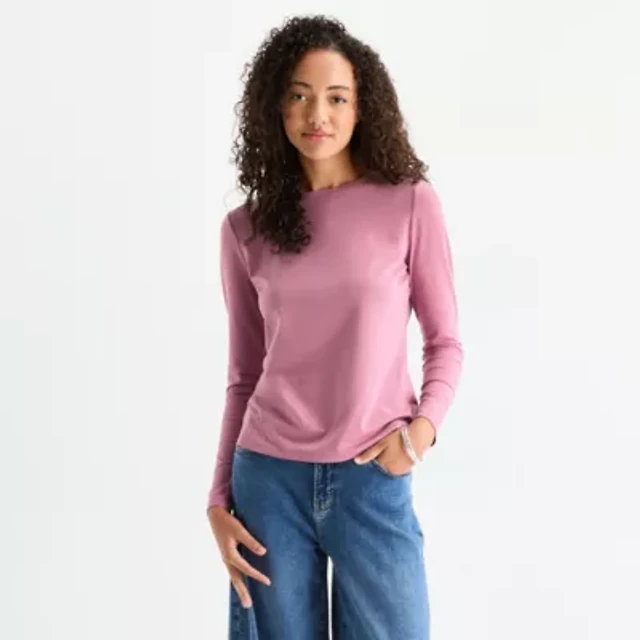 Liz Claiborne Womens Crew Neck Long Sleeve T-Shirt