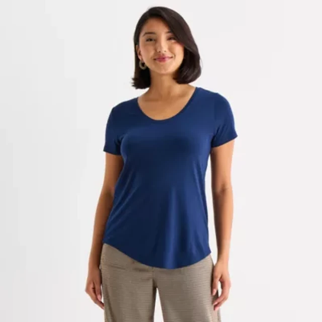 St. John's Bay Womens Boat Neck 3/4 Sleeve T-Shirt