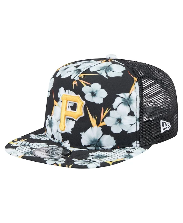New Era Men's Black Pittsburgh Pirates Adventure Pattern Golfer Trucker Snapback Hat
