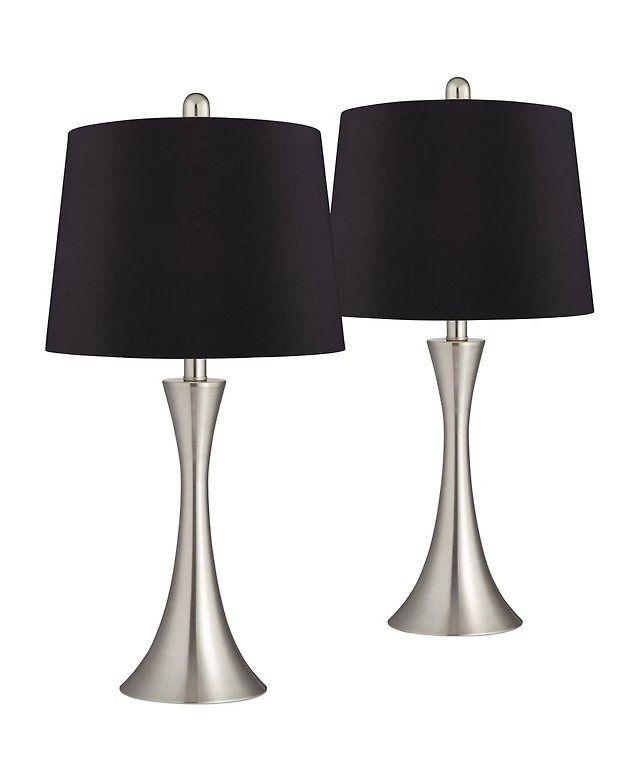 360 Lighting Roxie Modern Table Lamps 31" Tall Set of 2 Brushed Nickel Metal Off White Fabric Rectangular Shade for Bedroom Living Room Bedside O