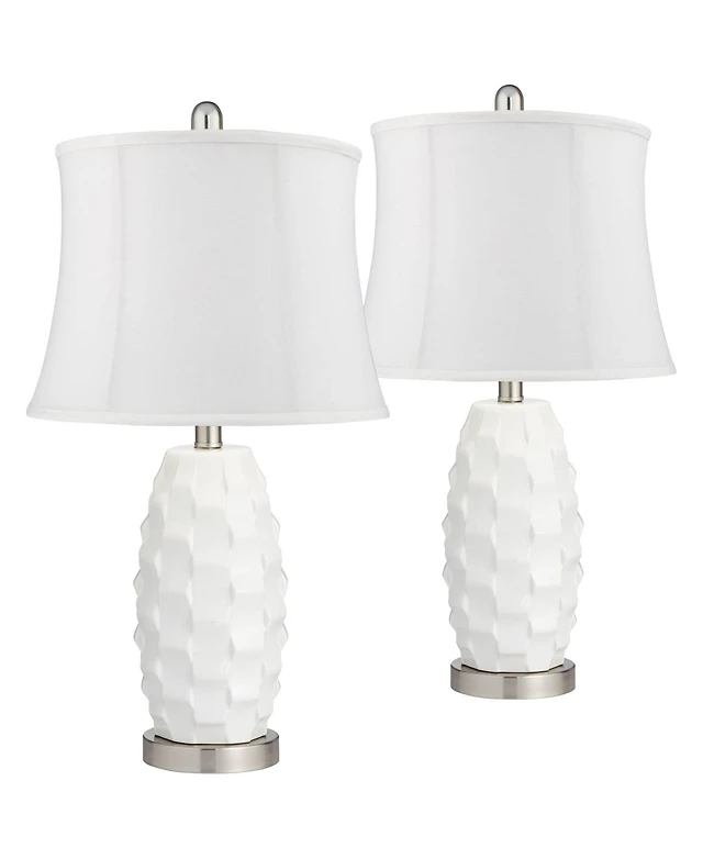 360 Lighting Led Modern Coastal Accent Table Lamps 24 1/2" High Set of 2 Scalloped White Ceramic Drum Shade for Bedroom Living Room Bedside Night