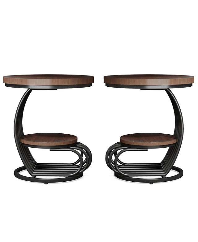 Tribesigns C-Shaped End Table Set of 2, Industrial 3-Tier Small Side Table for Couch, Wood Bedside Table Snack Side Table with Storage Shelves for Liv