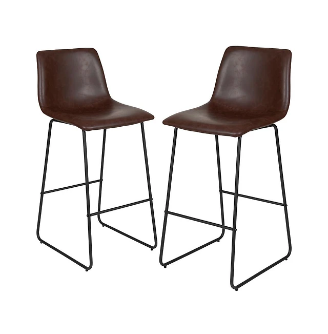 30 Inch Faux Bar Height Bucket Seat Stools, Set Of 2