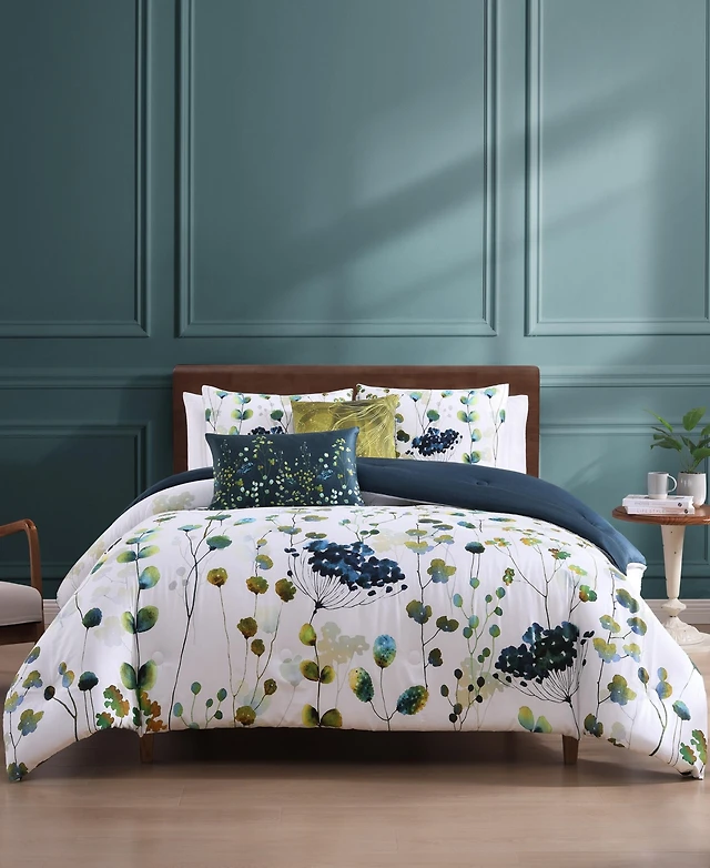 Bebejan Rose on Misty Green Bedding 200 Thread Count 100% Cotton Sateen 5 Piece Reversible King Comforter Set
