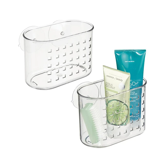 iDesign Small Suction Shower Basket for Bathroom, Set of 2, Clear, Made in Usa