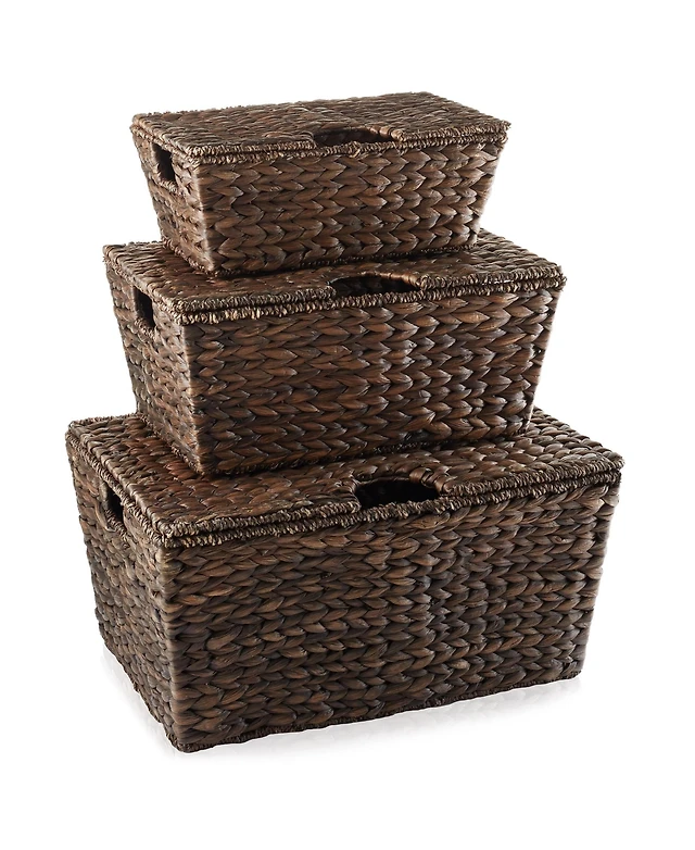 Household Essentials Wicker Basket Set, 3 Pieces, 1 Large and 2 Small Water Hyacinth Baskets