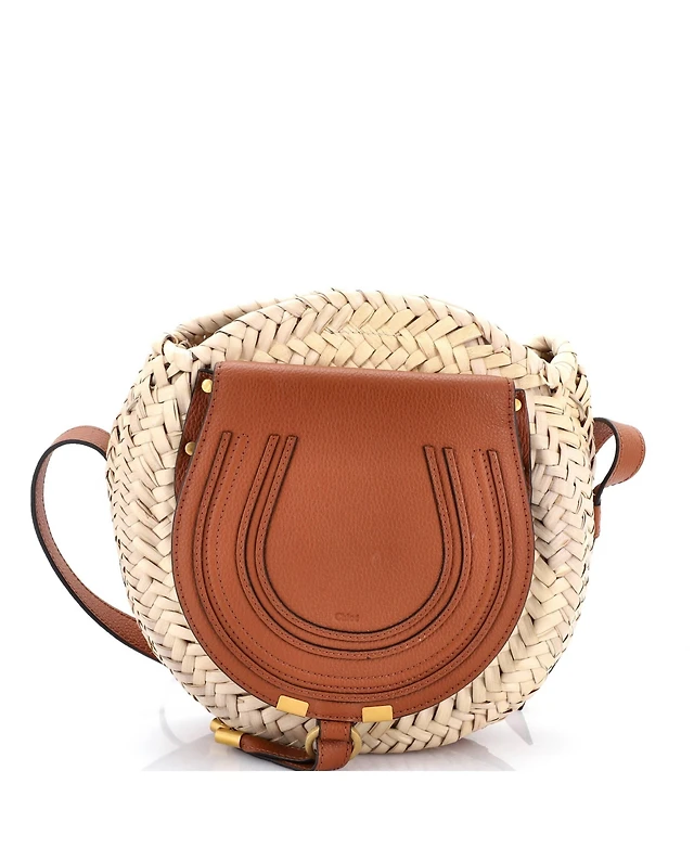 Pre-Owned Chloe Small Marcie Basket Crossbody Bag Raffia and Leather