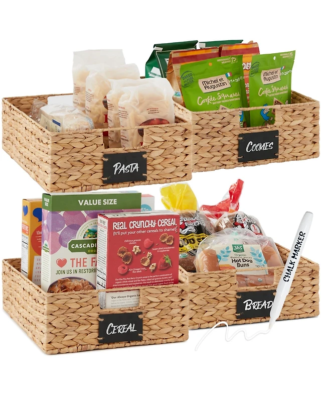 Best Choice Products Set of 4 16x12in Woven Water Hyacinth Pantry Baskets w/ Chalkboard Label, Chalk Marker
