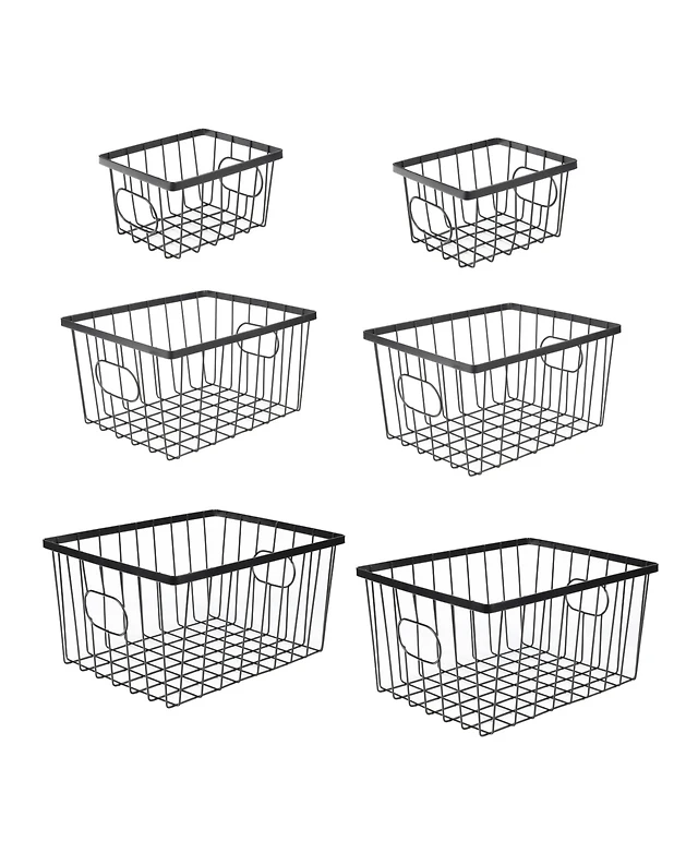 Oceanstar Stackable Metal Wire Storage Basket Set for Pantry, Countertop, Kitchen or Bathroom, Black, Set of 2