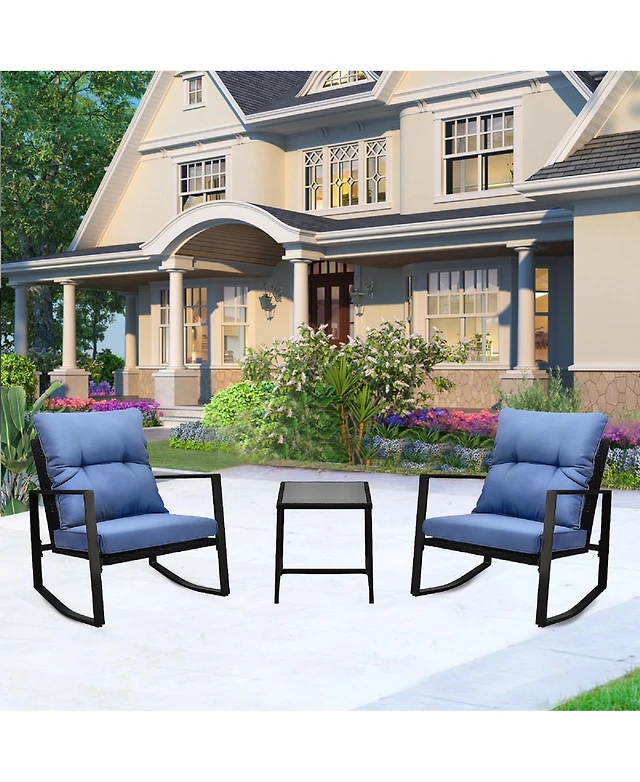 Gouun 3 Pieces Outdoor Rocking Set with Tempered Glass Table for Backyard Poolside