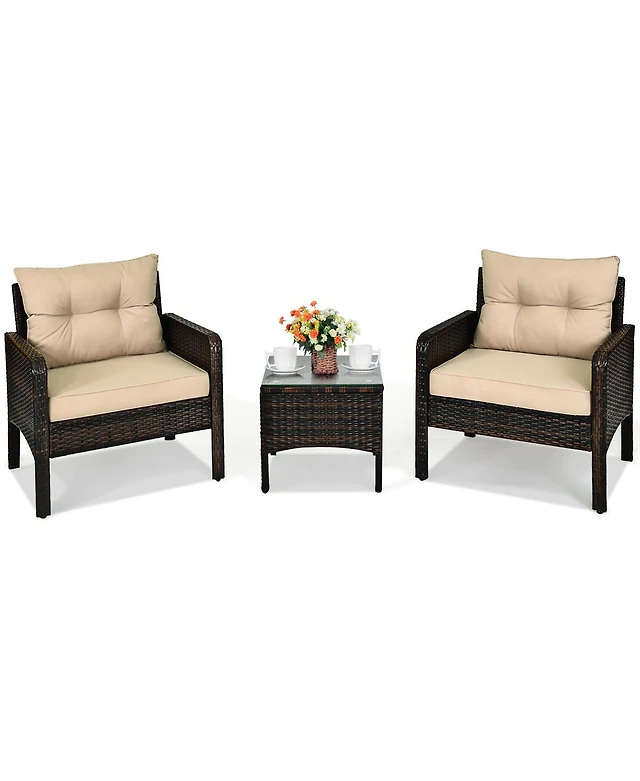 3PCS Patio Rattan Bistro Set Folding Table Chairs Garden Deck