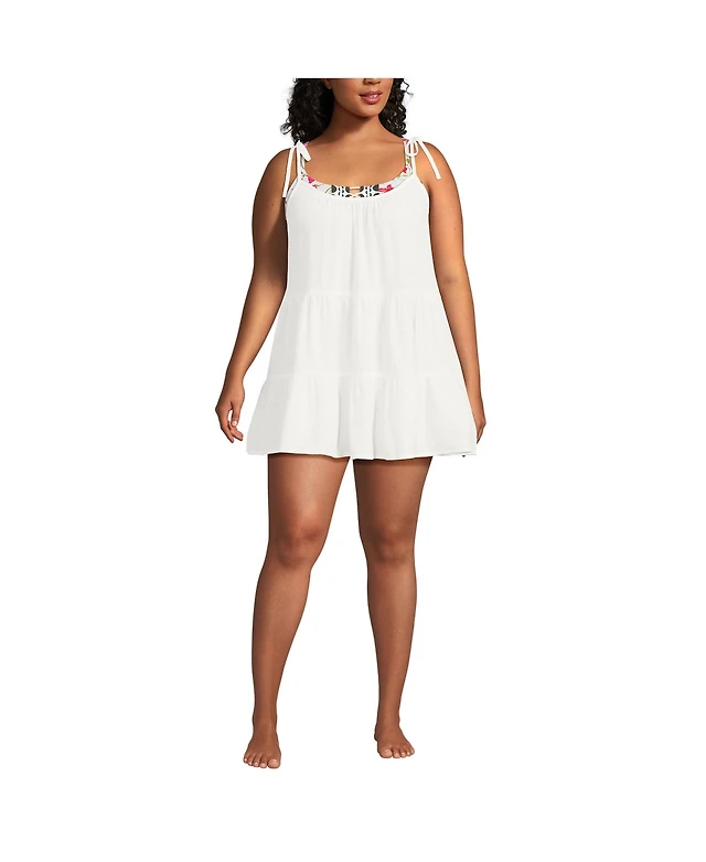 Lands' End Plus Cotton Gauze Tiered Mini Cover-up Dress