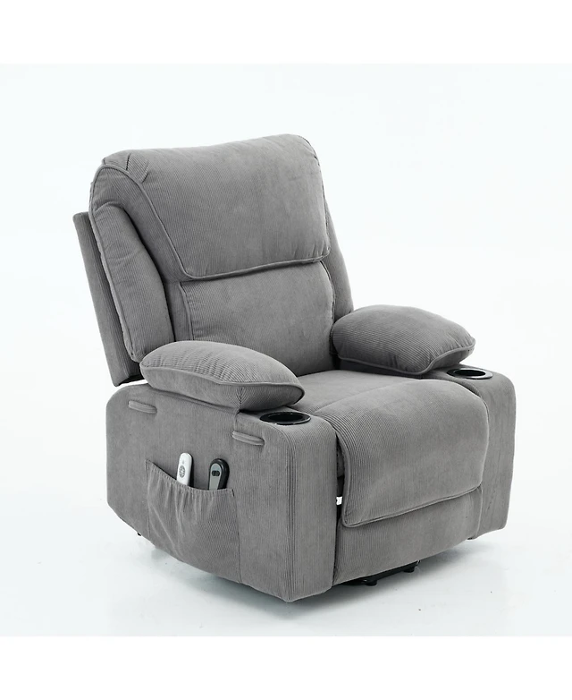 Streamdale FurnitureGray Remote-Controlled Heating and Massage Assistive Recliner for Seniors