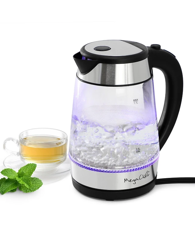 MegaChef 1.7 Quart Glass and Stainless Steel Electric Tea Kettle in Silver