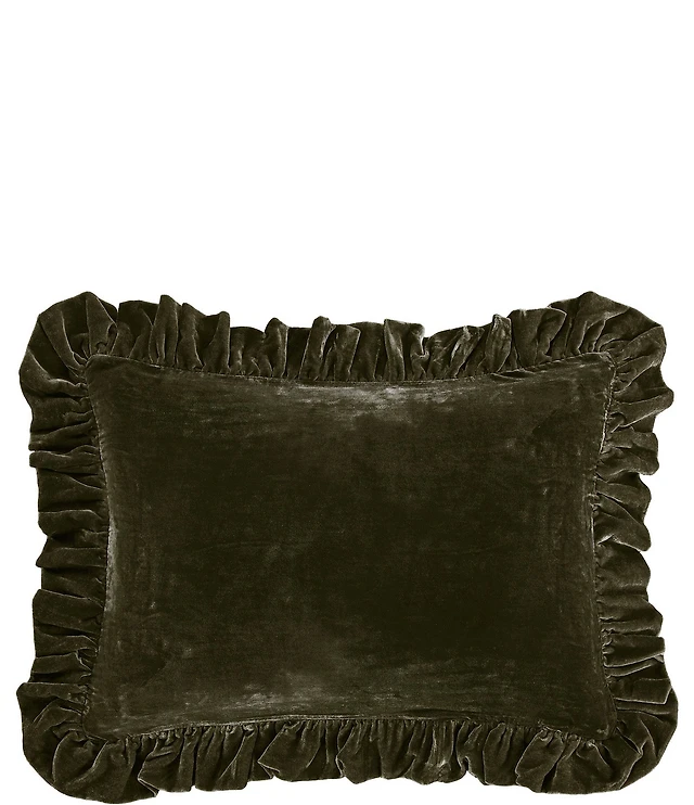 Stella Faux Silk Velvet Ruffled Oblong Pillow