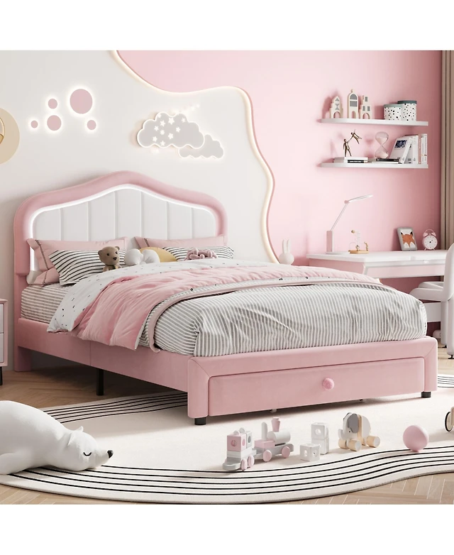 Gymax Twin Size Bed Frame w/ Drawers Led Lights Outlets & Usb Ports Smart App Control