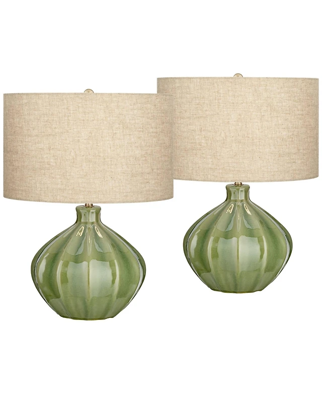 360 Lighting Claude Rustic Farmhouse Accent Table Lamps 21" High Set of 2 Beige Washed Linen Drum Shade for Bedroom Living Room Bedside Nightstan