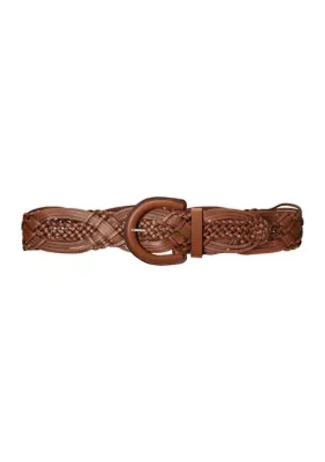 Sam Edelman Women's Woven Leather Belt with Circular Center Bar Buckle